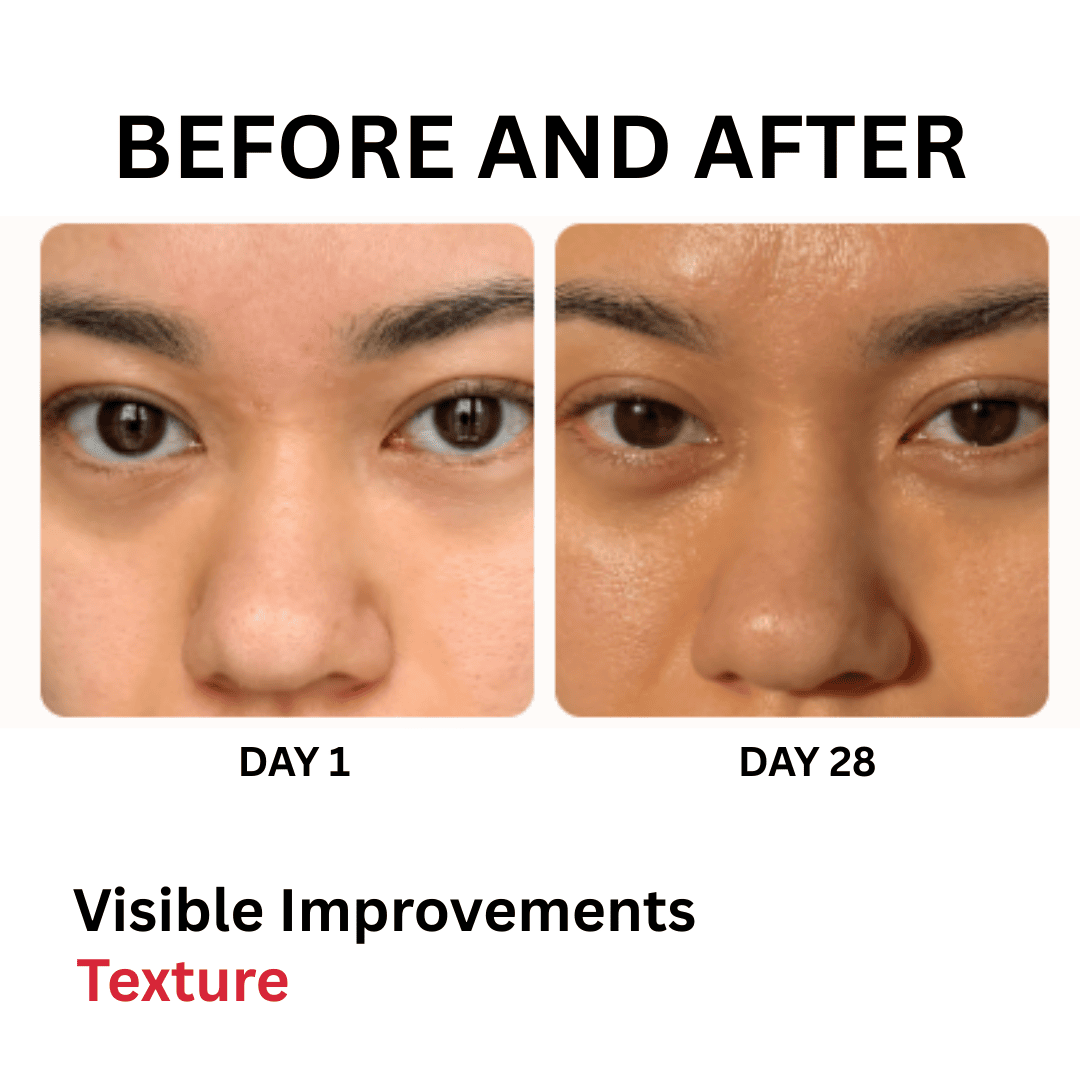 Most users see glow and redness reduction in 2–3 weeks. Full renewal and firmness show up around 4–6 weeks.